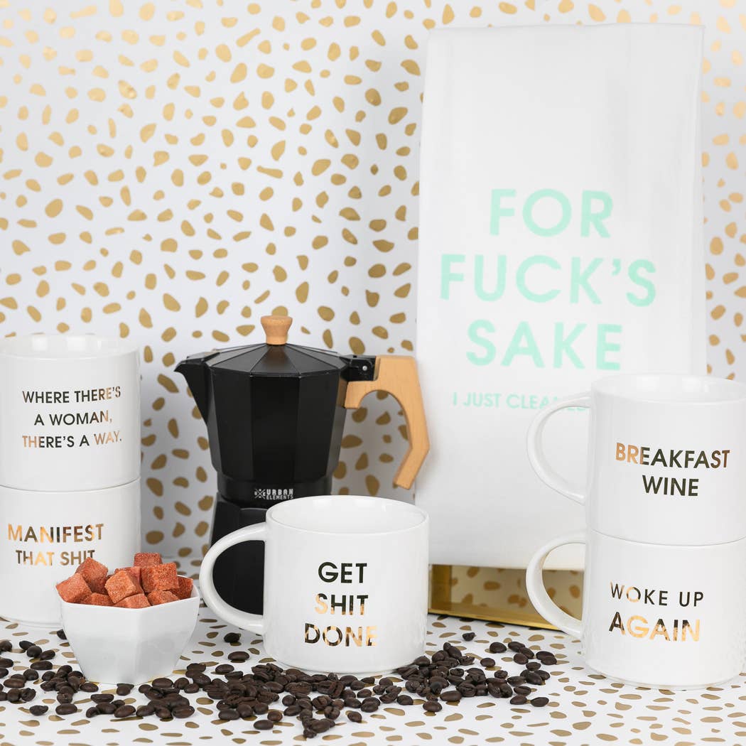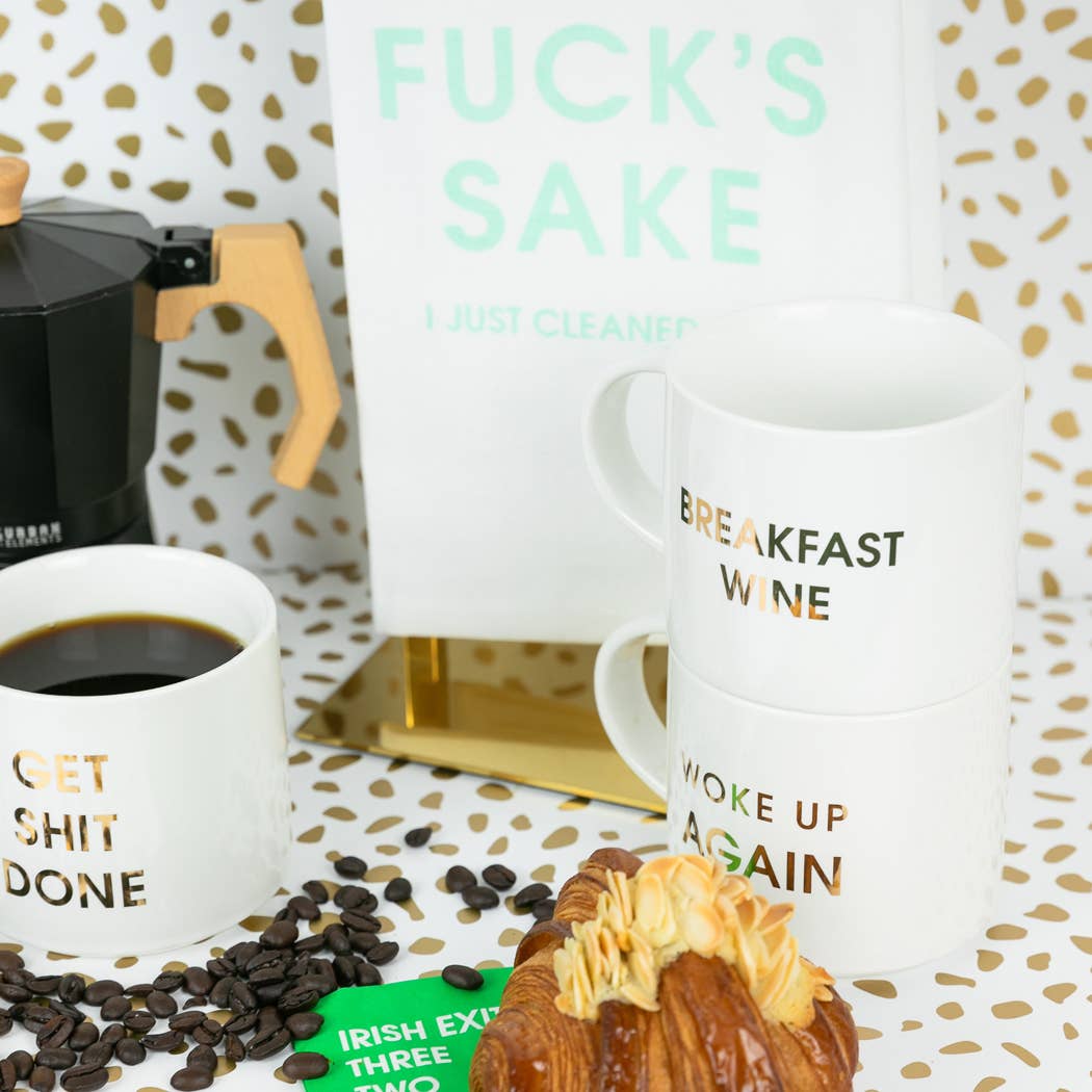 Is 9am too early? Our "Breakfast Wine" coffee mug has a gold foil imprint and is perfect for your coffee, tea or wine.