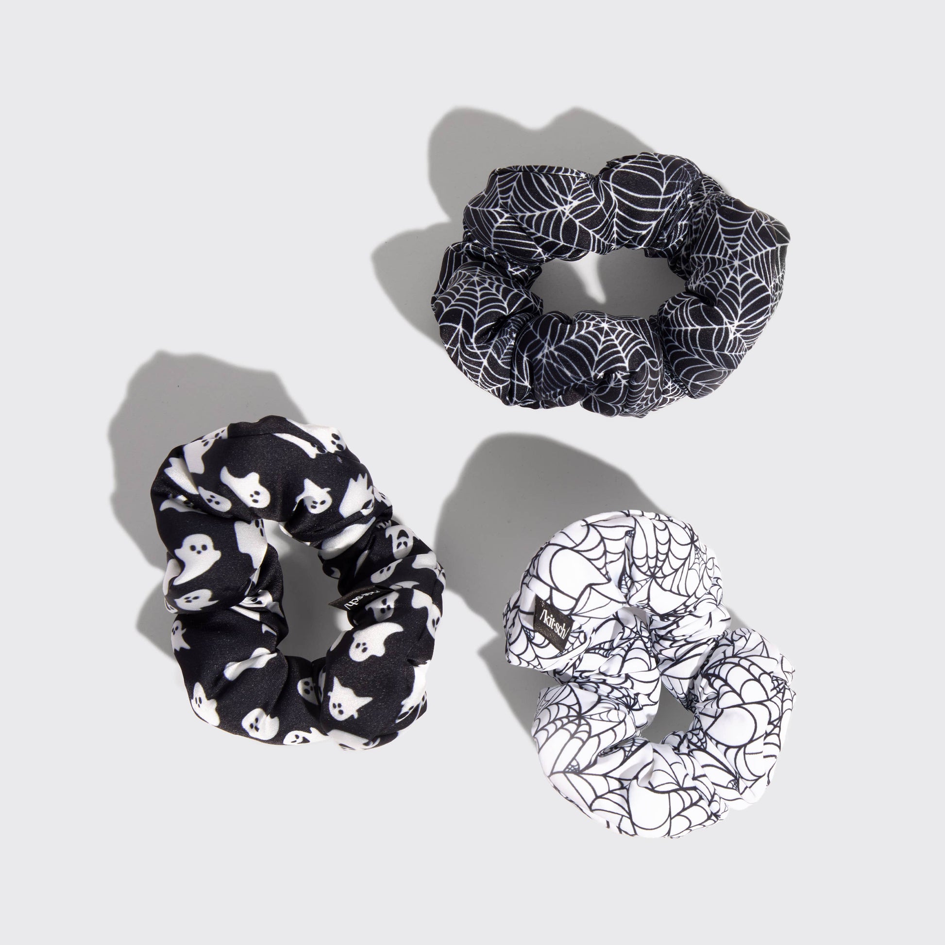 Get into the Halloween spirit with the KITSCH Cloud Scrunchies 3pc Set - Spiderweb. These scrunchies add a spooky touch to your hairstyle, perfect for the festive season. Each set includes three scrunchies, letting you mix and match or share with friends. Made sustainably, they're not just a fun accessory, but also a thoughtful choice for the environment. Whether it's for a Halloween party or just to celebrate the season, these scrunchies are a fun addition to your hair accessories collection.