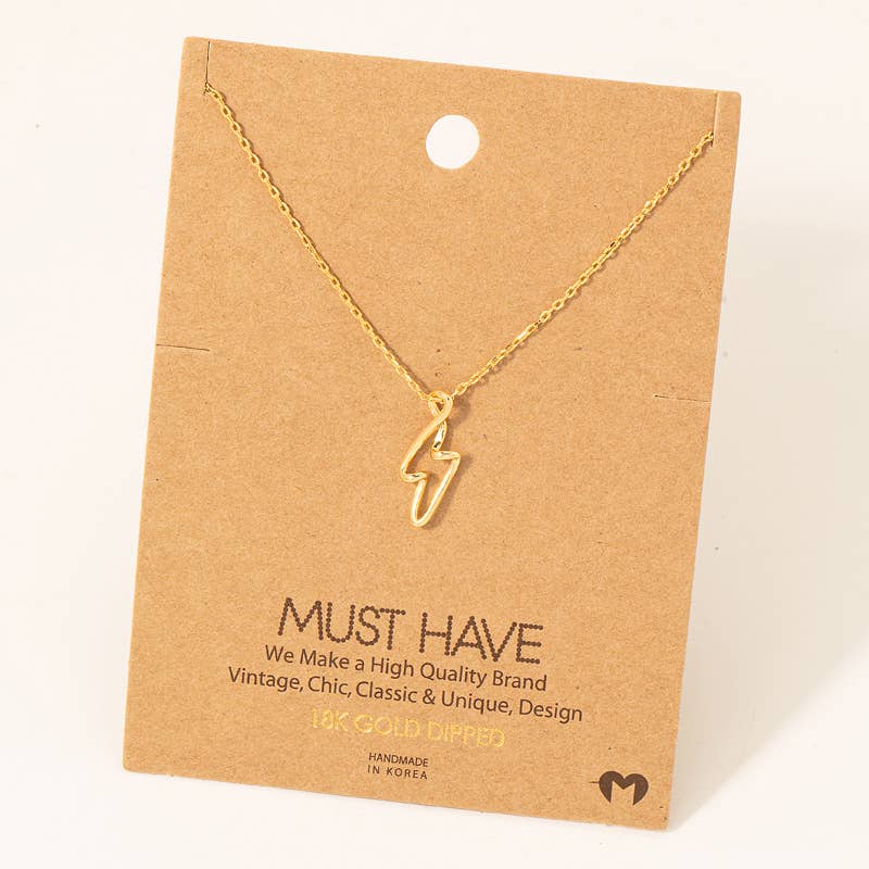 Gold Dipped Wire Lightning Bolt Pendant Necklace